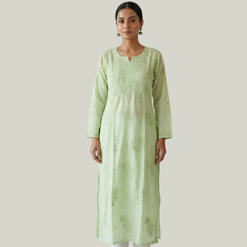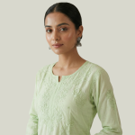 Muslin Chikankari Kurti designed with soft and breathable fabric, highlighted with delicate hand embroidery that brings a subtle elegance and everyday charm to your look.