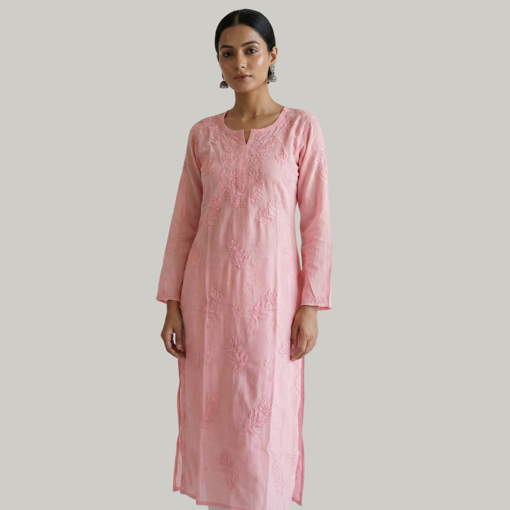 Muslin Chikankari Kurti designed with soft and breathable fabric, highlighted with delicate hand embroidery that brings a subtle elegance and everyday charm to your look.
