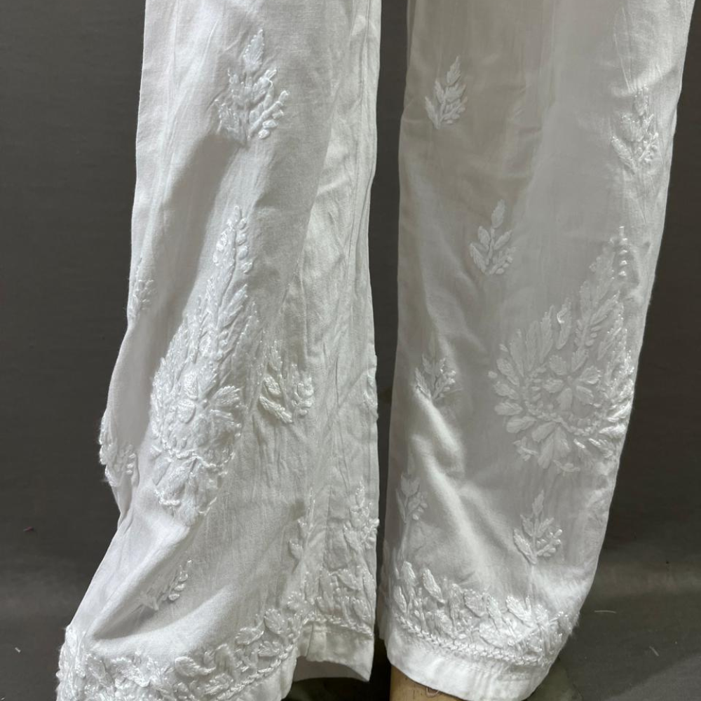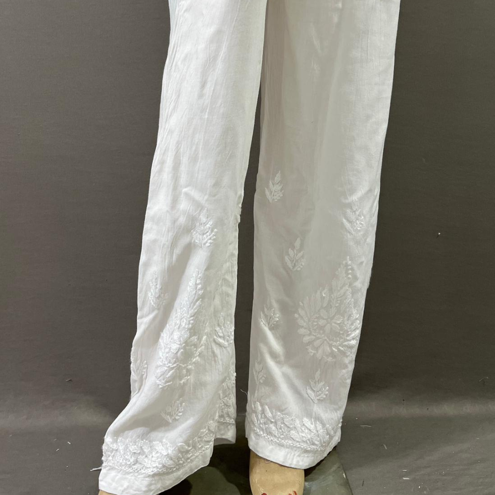 Elevate your everyday ethnic wardrobe with our timeless white chikankari bottom wear, crafted to blend comfort with understated elegance. Designed in soft, breathable rayon fabric, each piece features delicate hand-embroidered chikankari motifs that add a touch of heritage charm.